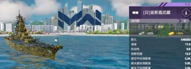 3、宙斯盾武藏號:火力體系爆發(fā)高,單輪輸出可達35萬,但主炮裝填長達16秒,空窗期長,速度與機動性差,適合打伏擊或混戰(zhàn)型對局。