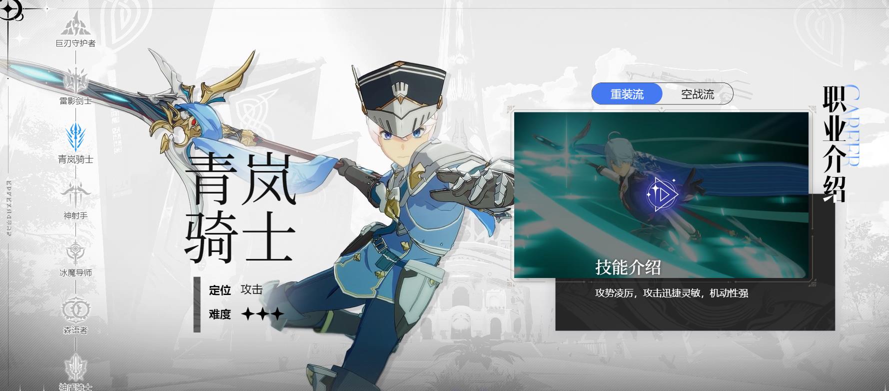 2、青嵐騎士是半坦半輸出的近戰(zhàn)職業(yè),有地面流和空戰(zhàn)流,可在地面或空中連招換血,適合喜歡無腦近戰(zhàn)輸出的玩家。