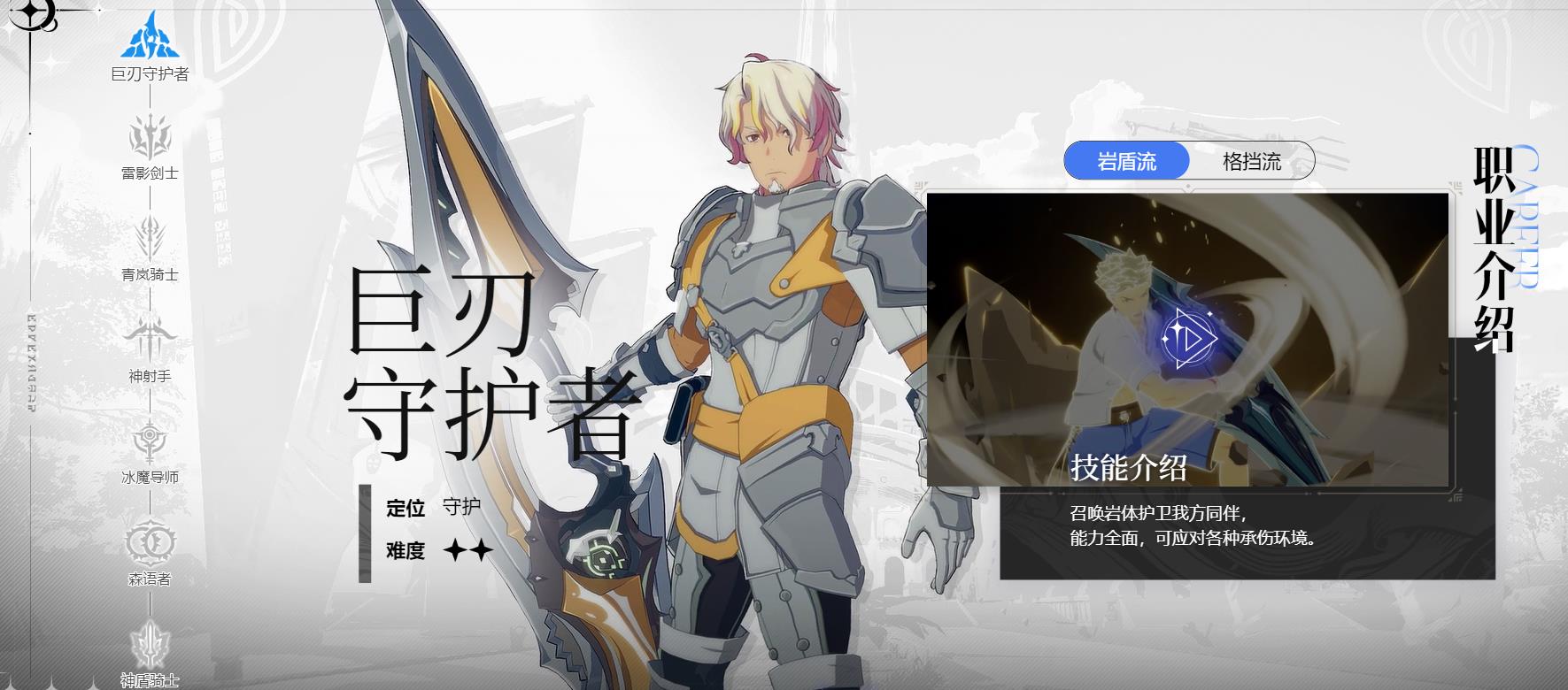 3、巨刃守護(hù)者是游戲中唯一的坦克職業(yè),有高減傷和嘲諷能力,兩個(gè)流派差異不大,適合喜歡當(dāng)前排抗傷害的玩家。