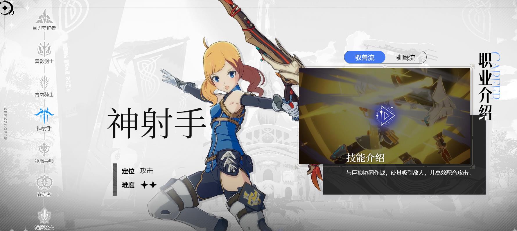 5、弓箭手是遠(yuǎn)程物理系輸出職業(yè),有老鷹流和巨狼流,分別召喚老鷹輔助攻擊和巨狼主力輸出,適合喜歡召喚動(dòng)物輸出的玩家。