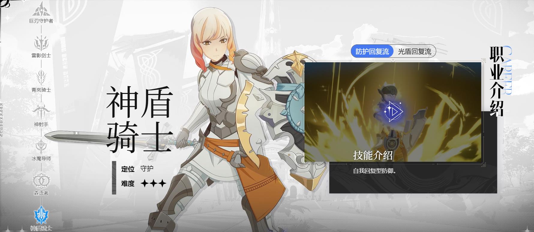 6、神盾騎士是團(tuán)隊(duì)中的防御核心職業(yè),有壁壘守護(hù)流和圣輝援護(hù)流,推薦玩壁壘守護(hù)流,適合擅長(zhǎng)承擔(dān)傷害保護(hù)隊(duì)友的玩家。