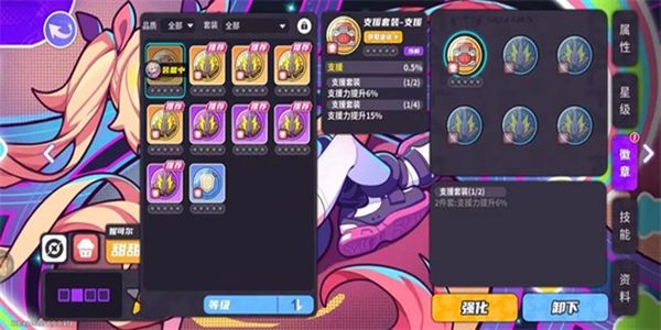 3、支援套徽章效果出色但獲取難度大,適合治療護(hù)盾類角色使用,由于競(jìng)技場(chǎng)兌換成本較高,建議不急于強(qiáng)化合并,優(yōu)先湊齊套裝效果。