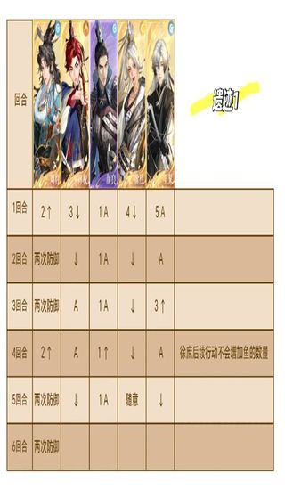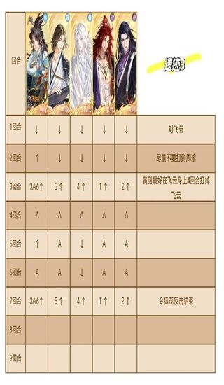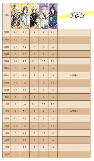3、遺跡3適合核爆隊(duì),前三回合針對(duì)飛云,第七回合賭翻倍,核爆隊(duì)用周瑜、劉豹等,徐庶隊(duì)搭配夏侯?lèi)?、王粲等,按回合流程輸出可高效通關(guān)。