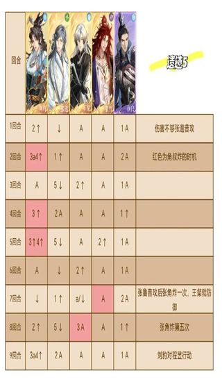 5、遺跡5利用角叔仰臥起坐吸程昱血量,角叔血量為1時(shí)再打程昱,搭配劉豹、張邈、王粲等,注意張魯伐身必備,按回合操作,把握張角炸的時(shí)機(jī)提升傷害。