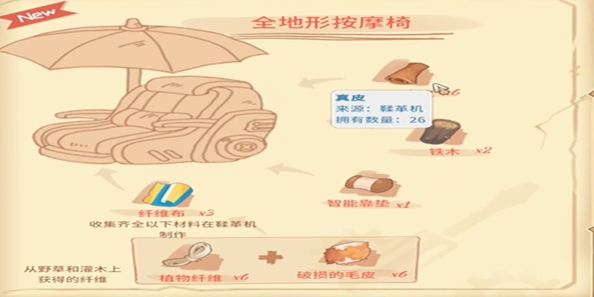 3、游戲中曾提及全地形按摩椅的制作材料,包括鐵木、智能靠墊、纖維布等,但獲取方式仍以在好兄弟家具店購買為主,滿足玩家對該家具的需求。