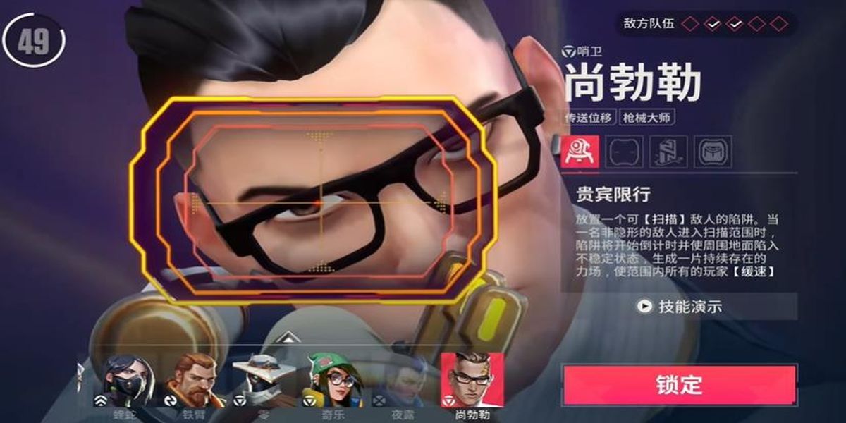 1、C技能貴賓限行可放置掃描陷阱,非隱形敵人進入范圍會生成持續(xù)力場,使范圍內(nèi)所有玩家減速,能有效限制敵人行動,為自身或隊友創(chuàng)造有利戰(zhàn)斗條件,提升對戰(zhàn)優(yōu)勢。