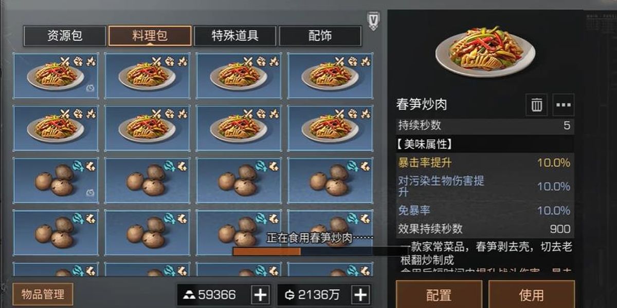 4、每個季節(jié)持續(xù)約7天時間,春筍可用來制作多種春季限定食譜,為生存提供額外幫助,合理規(guī)劃采集和購買時間,能讓幸存者更高效地獲取這一季節(jié)性資源。