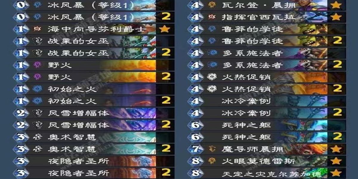 2、構(gòu)筑上除核心外加入冰冷案例夜隱者圣所等強(qiáng)力新卡,卡牌間產(chǎn)生奇妙化學(xué)反應(yīng)使卡組強(qiáng)度達(dá)當(dāng)前版本T0級(jí)別,還保留部分火沖法經(jīng)典搭配思路,差異主要在部分單卡選擇。