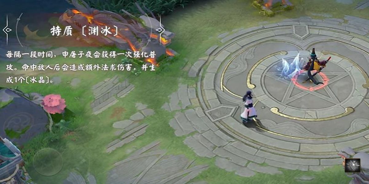 1、特質(zhì)淵冰每隔一段時(shí)間,申屠子夜會獲得強(qiáng)化普攻,命中敵人后造成額外法術(shù)傷害,還會生成1個(gè)冰晶,這是創(chuàng)造冰晶的基礎(chǔ)方式,可配合其他技能使用。