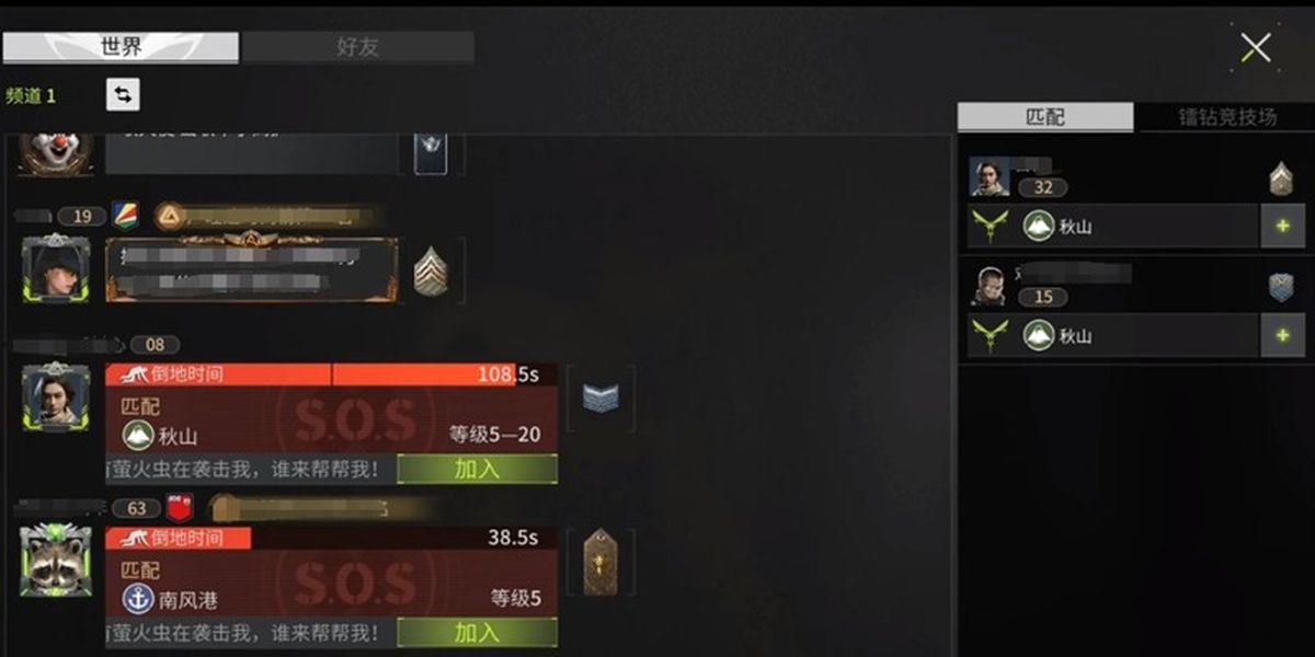 1、玩家對(duì)局中倒地且不想退出時(shí),可發(fā)起求救信號(hào),世界頻道聊天大廳會(huì)出現(xiàn)求救信息,其他玩家看到后點(diǎn)擊加入按鈕就能參與救援,進(jìn)入對(duì)局后救援者出現(xiàn)在倒地玩家附近區(qū)域。