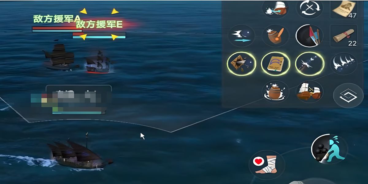 2、消滅5艘敵船后,可嘗試將兩艘距離較遠(yuǎn)的船只引到海邊,減少受到的傷害,剩下三艘船火力較弱,可直接發(fā)起進(jìn)攻,整個過程消耗15個行動力。