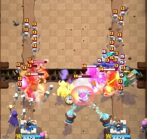 4、防御模式推薦用高防御卡牌,如各類(lèi)營(yíng)地可召喚小兵抗衡敵人,搭配滾木、野蠻人滾筒或冰凍法術(shù)等快速清雜手段,提升防守效率,降低國(guó)王塔受損風(fēng)險(xiǎn)。