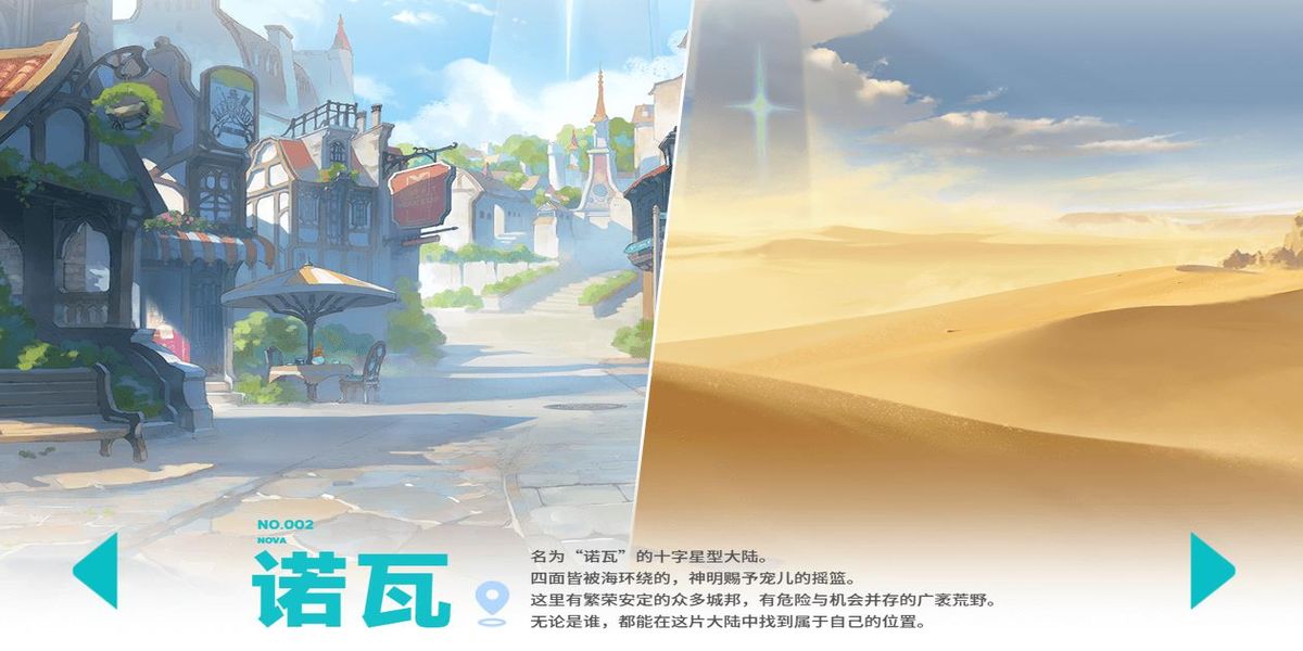 2、諾瓦是四面被海環(huán)繞的十字星型大陸,是神明賜予寵兒的搖籃,這里有繁榮安定的眾多城邦,也有危險(xiǎn)與機(jī)會(huì)并存的廣袤荒野,能讓不同的人找到屬于自己的位置,充滿多樣可能。