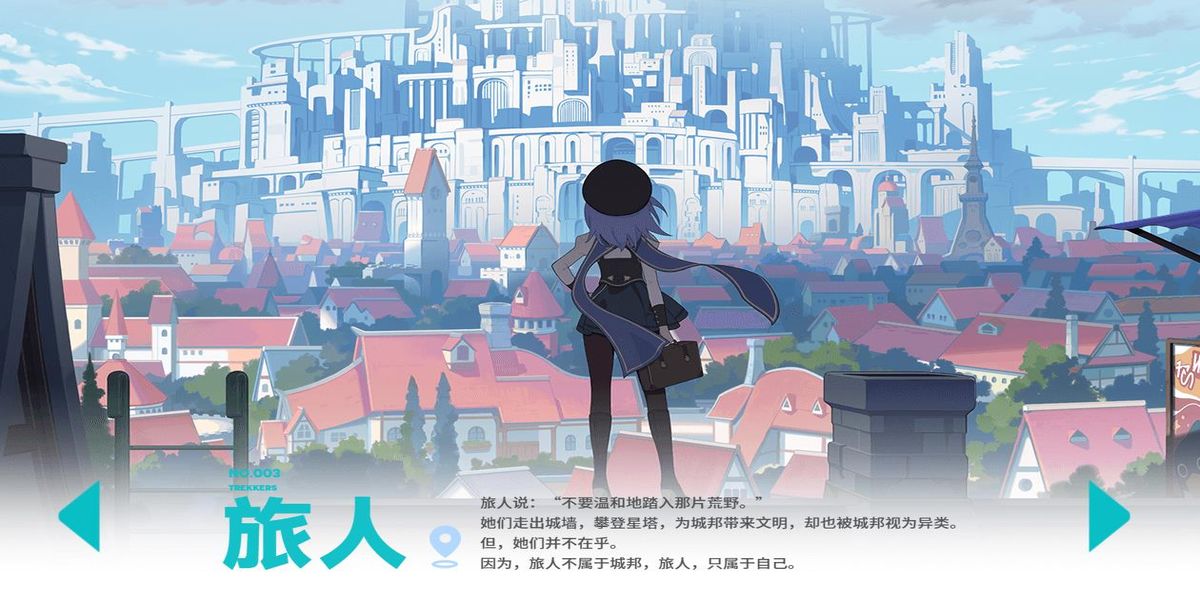 3、旅人是走出城墻、攀登星塔并為城邦帶來文明的群體,她們雖被城邦視為異類,但并不在乎,因?yàn)槁萌瞬粚儆诔前?,只屬于自己,她們?cè)谑澜缰杏兄?dú)特的定位與價(jià)值。