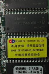 在現(xiàn)在的內(nèi)存市場(chǎng)上,KingMax(勝創(chuàng))的假貨也比較多,不過辨別起來卻比金士頓容易多了,這是由于KingMax采用了特有的芯片防偽技術(shù)——關(guān)公紅芯,KingMax推出的“關(guān)公紅芯”防偽技術(shù)是在PCB板正面第四顆顆粒的位置設(shè)定了一顆采用Kingmax全球獨(dú)家專利的TinyBGA封裝技術(shù)的紅色Coding顆粒;其次,特殊應(yīng)用的芯片內(nèi)加入了ID CODE(全球統(tǒng)一識(shí)別碼),使得每一條內(nèi)存均具有唯一性,由于其獨(dú)特性,因此也很少有假貨出現(xiàn)。