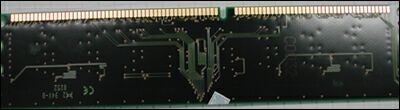 大家注意以假充真的Kingston條在市場(chǎng)上已經(jīng)出現(xiàn)了,Kingston條沒有固定的芯片,所以每批貨芯片不一樣,真假條不能以芯片來區(qū)別,但Kingston條的PCB板是不變的,而且很有特色。在國(guó)內(nèi)所有的 Kingston 內(nèi)存上將會(huì)出現(xiàn)采用特殊工藝制造的內(nèi)存防偽號(hào)碼,這種防偽措施是采用將內(nèi)存防偽標(biāo)貼上的其中4位數(shù)和采用特殊工藝?yán)佑≡趦?nèi)存PCB板上的內(nèi)存編號(hào)中4位數(shù)是否一一對(duì)應(yīng)的方法來辨別真假,采用這種防偽措施其最大的優(yōu)點(diǎn)在于造假者如沒有專業(yè)的內(nèi)存制造水平那是極難仿效的,因而采用此方法打假定會(huì)給那些造假者以最沉痛的打擊。另外,Kingston內(nèi)存的PCB板線路很精細(xì),采用針空似的,而現(xiàn)在市場(chǎng)上出現(xiàn)的假條PCB板和Apacer PCB板都差不多,如圖: