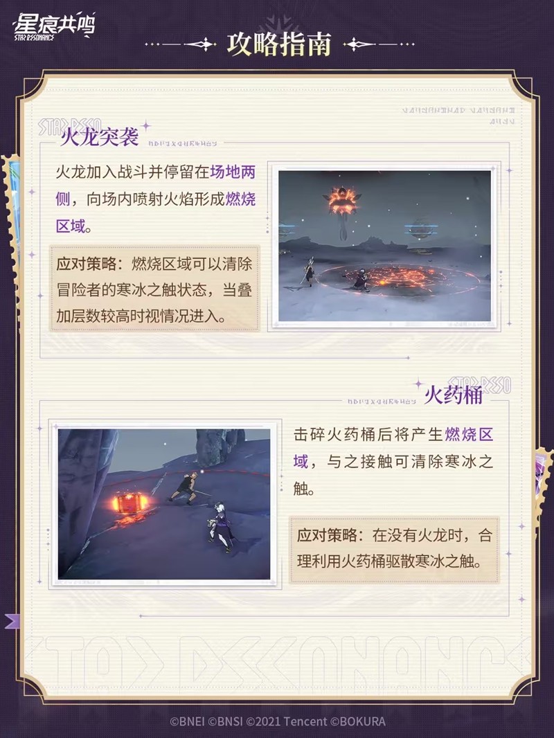 4、凜伊茲寇利基掌控冰元素,會用低溫攻擊和凍結(jié)技能,需應(yīng)對惡劣天氣影響,可利用火龍噴射的燃燒區(qū)域或擊碎火藥桶清除寒冰之觸,團隊集中站位避免凍結(jié)并合理應(yīng)對各類技能。