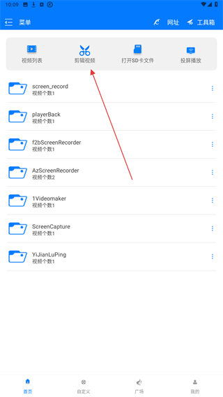 1、啟動(dòng)PotPlayer的應(yīng)用APP,進(jìn)入首頁(yè)點(diǎn)擊上方剪輯視頻的按鈕。