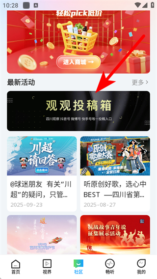 2、在社區(qū)的頁面中,找到并點擊觀觀投稿箱,進入觀觀爆料箱頁面。