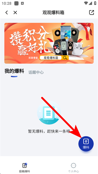 4、需要點擊頁面右下角的爆料按鈕,即可開始投稿的操作。