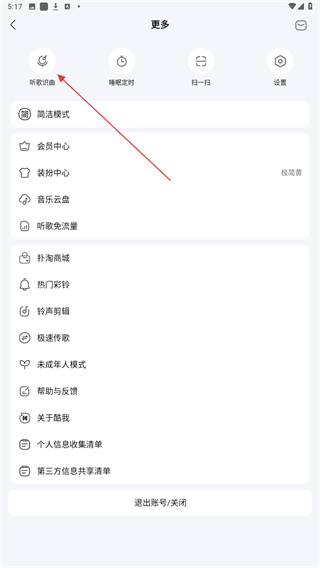 3、在更多的界面內(nèi),點(diǎn)擊聽歌識曲的功能按鈕。