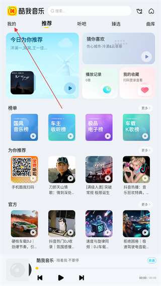 1、啟動酷我音樂盒的APP,進(jìn)入時點(diǎn)擊左上角我的按鈕。