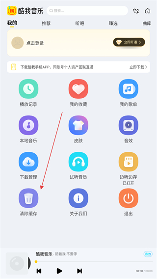 2、進(jìn)入我的界面內(nèi),找到并點(diǎn)擊清除緩存的功能按鈕。