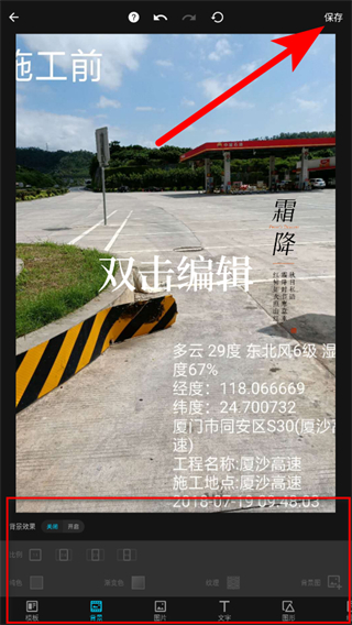 4、完成編輯后,點(diǎn)擊界面右上角的保存,將制作好的照片海報(bào)保存到設(shè)備中。