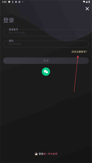 3、進(jìn)入登錄的界面內(nèi),點(diǎn)擊還未注冊賬號的區(qū)域。