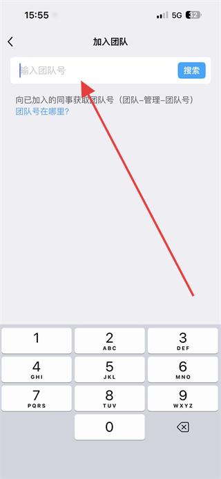 4、以搜索團(tuán)隊(duì)號(hào)為例,在輸入框中輸入團(tuán)隊(duì)號(hào)后點(diǎn)擊搜索,按照提示完成加入團(tuán)隊(duì)操作即可。