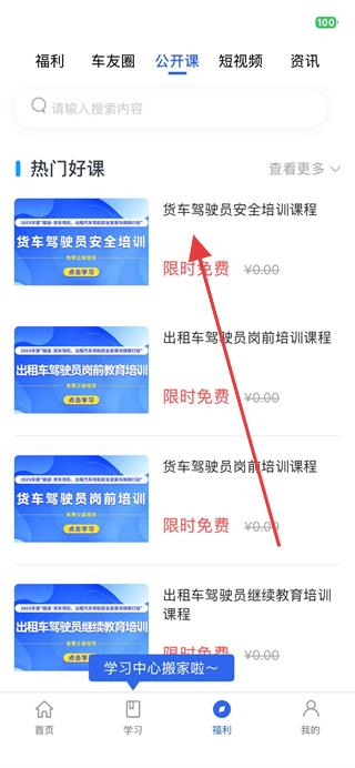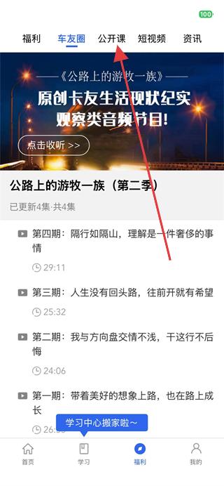 2、在福利頁面中,找到并點擊上方公開課選項卡。