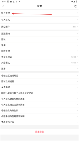 4、進(jìn)入設(shè)置的頁(yè)面內(nèi),點(diǎn)擊賬號(hào)管理的功能按鈕。