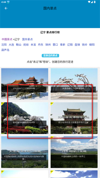 2、在國內(nèi)景點(diǎn)頁面的“中國景點(diǎn)排行榜”中,選擇要查看的省份如遼寧,進(jìn)入該省份景點(diǎn)排行榜頁面。