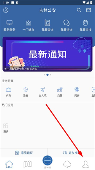 1、打開吉林公安app,點擊底部導(dǎo)航欄的個人圖標進入登錄頁面。