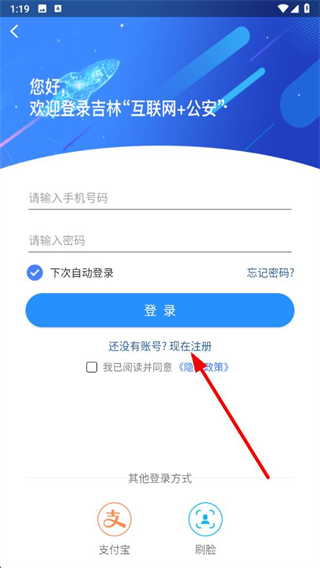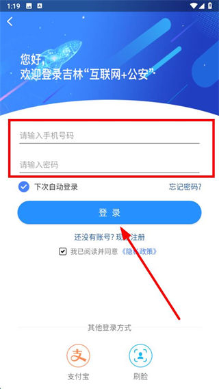 4、注冊完成后,返回登錄頁面,輸入手機號碼和密碼,勾選我已閱讀并同意隱私政策,點擊登錄即可。