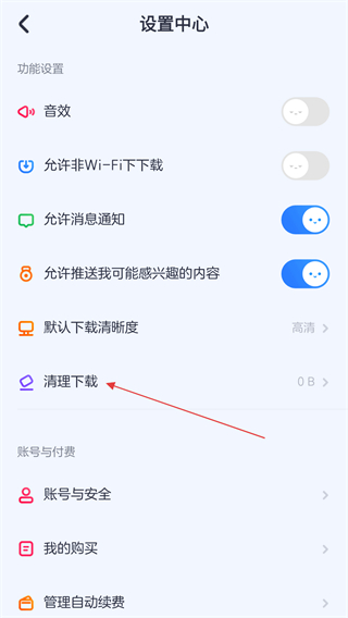 2、進(jìn)入設(shè)置中心的界面內(nèi),用戶需向下拉動(dòng)點(diǎn)擊清理下載的按鈕。