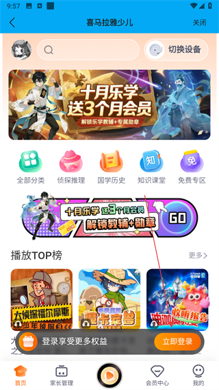 2、進(jìn)入喜馬拉雅少兒頁(yè)面后,點(diǎn)擊立即登錄按鈕。