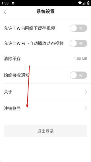 3、進(jìn)入系統(tǒng)設(shè)置頁(yè)面后,點(diǎn)擊注銷賬號(hào)選項(xiàng)。