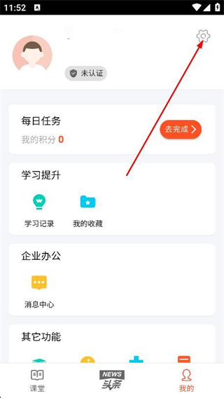 2、在我的頁面中,找到并點擊右上角的設(shè)置圖標(biāo)。
