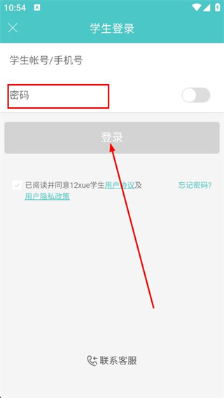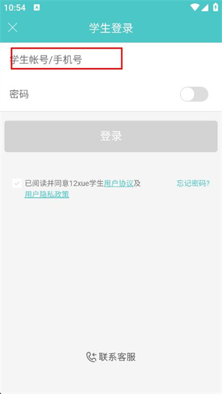 3、在學(xué)生登錄頁面,點(diǎn)擊輸入框,輸入學(xué)生帳號/手機(jī)號。
