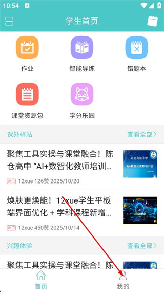 1、打開12學(xué)app,點(diǎn)擊底部導(dǎo)航欄中的我的選項。