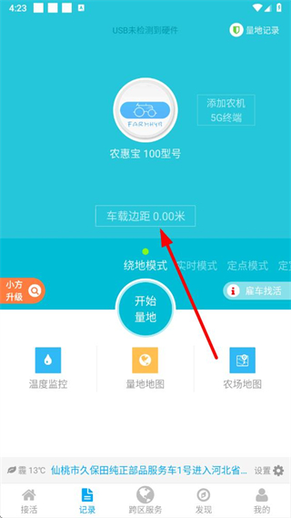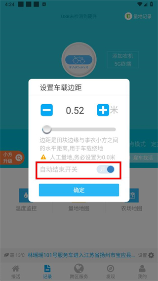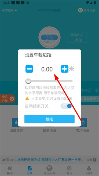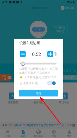 1、在事農(nóng)小方app記錄頁面點(diǎn)擊車載邊距區(qū)域,彈出設(shè)置車載邊距窗口。