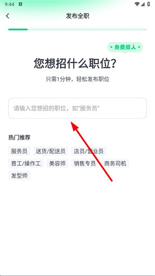 2、在發(fā)布全職頁面輸入想要招聘的職位名稱,或在熱門推薦中選擇職位。
