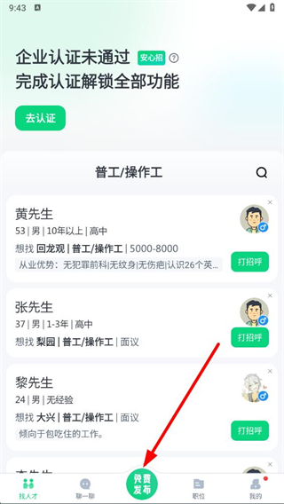 1、在趕集招聘app界面點擊免費發(fā)布按鈕,進入發(fā)布全職頁面。
