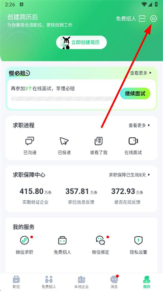 2、在我的在線簡歷頁面右上角,點擊設(shè)置的圖標(biāo),進入求職隱私保護的設(shè)置界面。