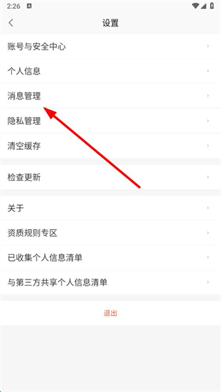 3、進入設(shè)置頁面后,點擊消息管理選項。