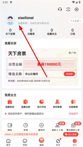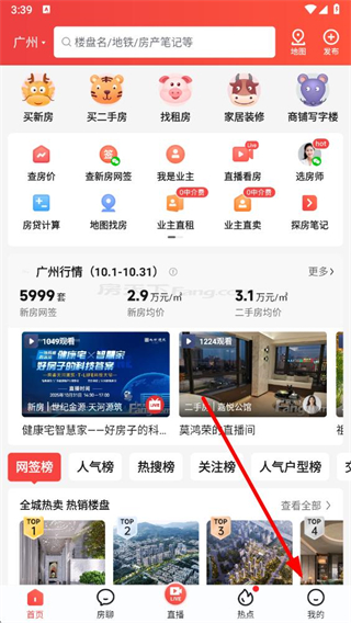 1、打開(kāi)房天下APP,點(diǎn)擊右下角我的進(jìn)入個(gè)人頁(yè)面。