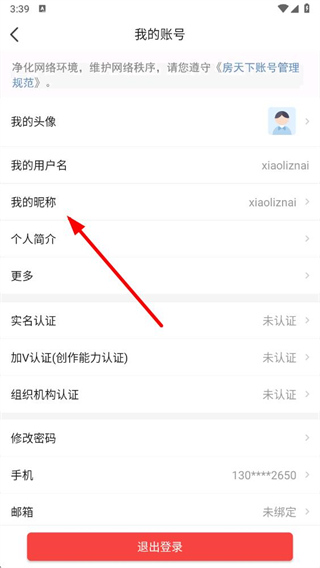 3、進(jìn)入我的賬號(hào)頁(yè)面后,點(diǎn)擊我的昵稱選項(xiàng)。