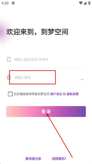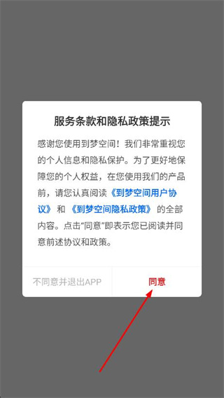 1、打開到夢空間app,在隱私政策彈窗中,點擊同意。