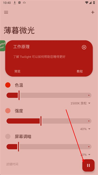 1、點(diǎn)擊薄暮微光APP界面右下角的暫停按鈕,暫停當(dāng)前濾鏡效果。